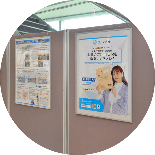 国土交通省の道路行政における維持管理や防災対策など、様々な取り組みを紹介しているパネルをお借りして、コンサート会場内で展示しています。